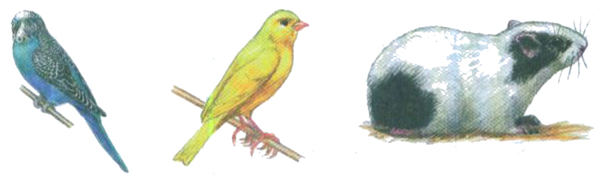 Волнистый попугайчик, канарейка, морская свинка.
